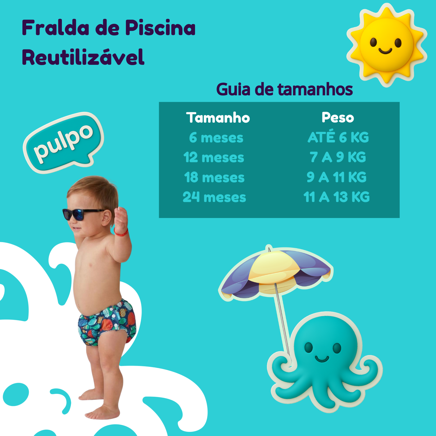 A Fralda de Piscina Reutilizável Pulpo foi especialmente desenvolvida para bebês e crianças dos 6 aos 24 meses, proporcionando proteção e conforto durante os momentos de diversão na água. Com proteção UV50+, este produto ajuda a proteger a pele delicada do seu bebé dos raios solares nocivos enquanto desfruta da piscina ou praia. O design reutilizável torna esta fralda uma opção prática e conveniente para os pais, eliminando a necessidade de fraldas descartáveis a cada utilização. O tecido é confortável e permite liberdade de movimentos, essencial para que os pequenos possam brincar e nadar sem restrições. A estampa colorida e atrativa adiciona um toque de estilo ao visual do seu bebê. O ajuste seguro garante proteção contra acidentes na água, mantendo a higiene e o conforto. Ideal para dias de verão, férias na praia ou aulas de natação, esta fralda de piscina Pulpo combina funcionalidade com design moderno. Recomenda-se verificar as informações de tamanho antes de encomendar para garantir o ajuste perfeito. Não precisa usar fralda descartável junto.