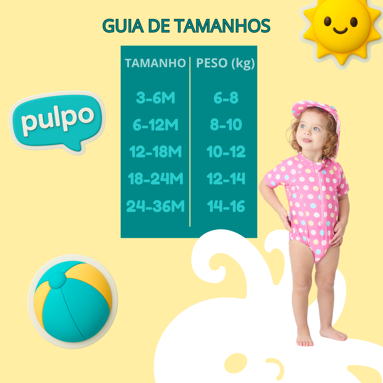 PROTEÇÃO UV 50+: proteção total contra raios ultra-violeta, deixando o bebê seguro para ficar no sol