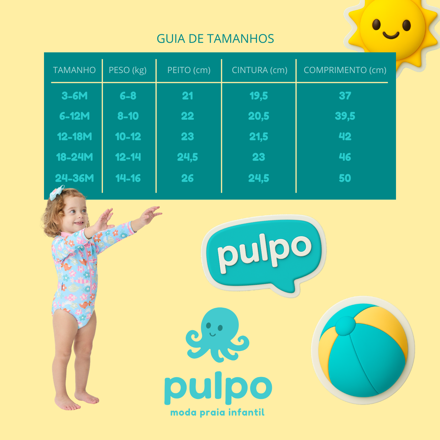 PROTEÇÃO UV 50+: proteção total contra raios ultra-violeta, deixando o bebê seguro para ficar no sol