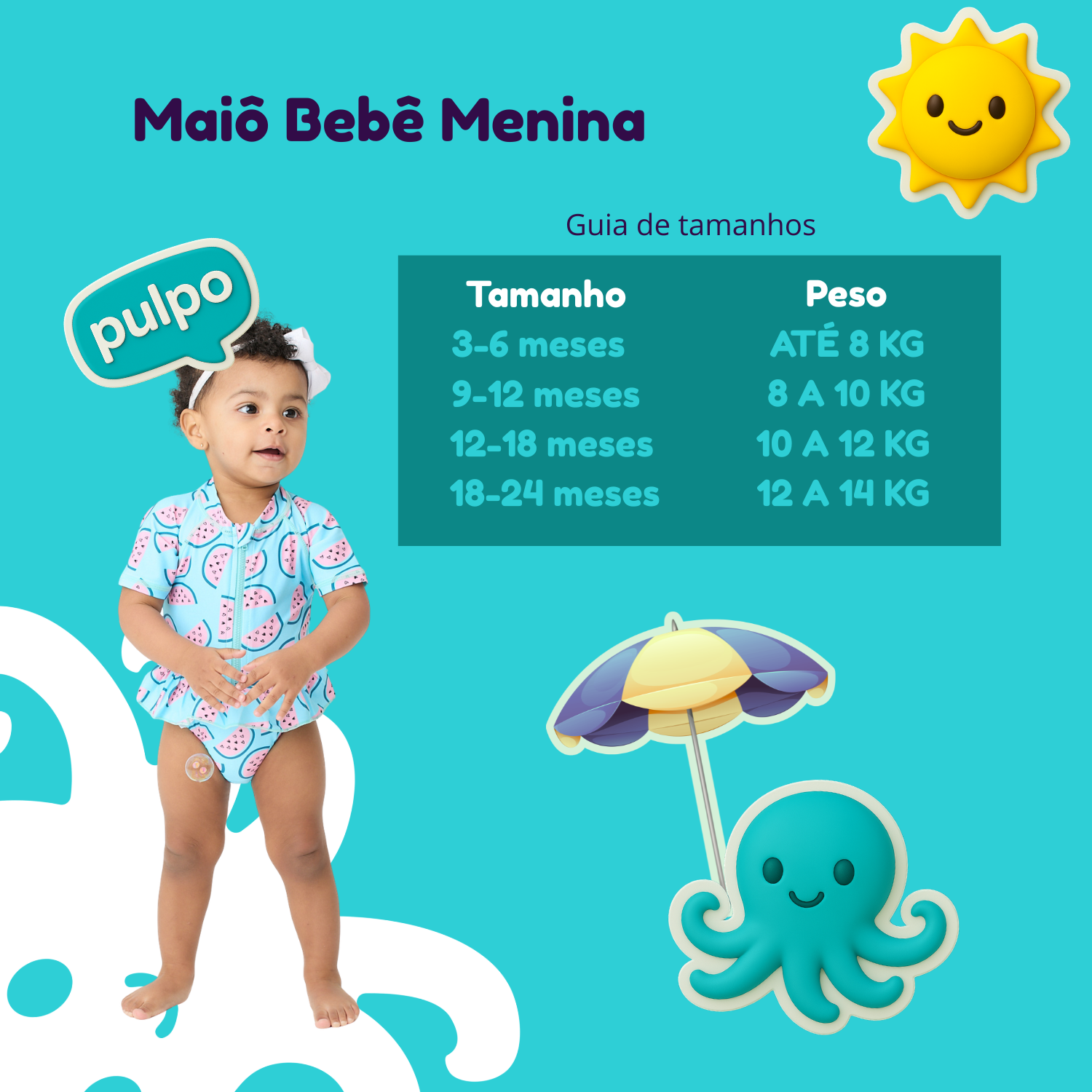 PROTEÇÃO UV 50+: proteção total contra raios ultra-violeta, deixando o bebê seguro para ficar no sol