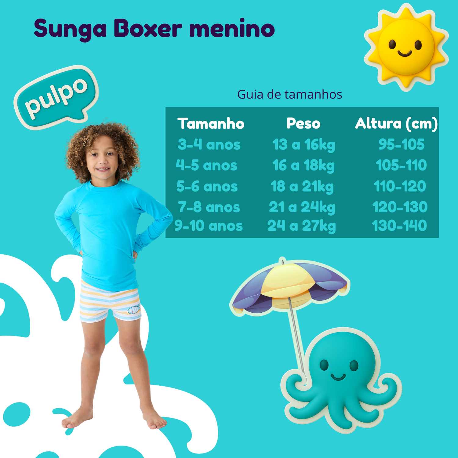 CONFORTO: a sunga é respirável, leve e flexível, proporcionando conforto à criança durante o uso. Ideal para atividades de lazer no verão, como praia, piscina, e atividades de banho em geral.